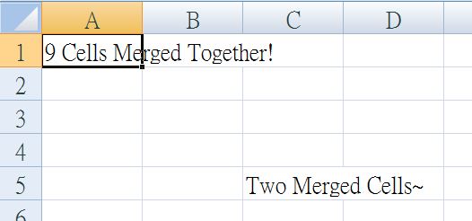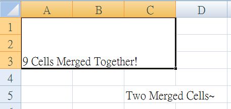 sh['C5'] = 'Two Merged Cells~'